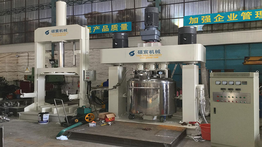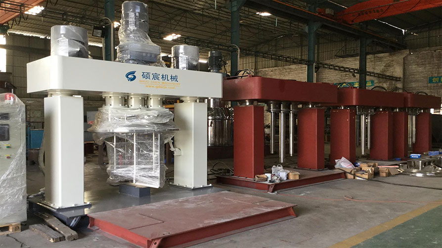 強力分散機有三個電機,釜內有三根不同形(xíng)式(shì)的攪拌器,其中一個攪拌器在繞釜(fǔ)體軸線轉(zhuǎn)動,其餘兩個攪拌裝置又以不同(tóng)的轉速,繞自身軸線高速自轉,使(shǐ)物料在釜內作複(fù)雜的運動,受到強烈的剪切(qiē)和搓(cuō)合(hé)。釜內設山形刮刀,繞釜體(tǐ)軸線轉動,將粘在壁上和底部的原料刮出,使其效果更為理想。釜體(tǐ)采用特別密封結構,可抽真(zhēn)空,具有良好(hǎo)的排氣除泡(pào)效果。缸體夾套可根(gēn)據用戶需要進行加熱,冷卻。出料方式為壓料式(shì),設備缸蓋可液壓升降,缸體可自由移動,操(cāo)作十分(fèn)簡單。