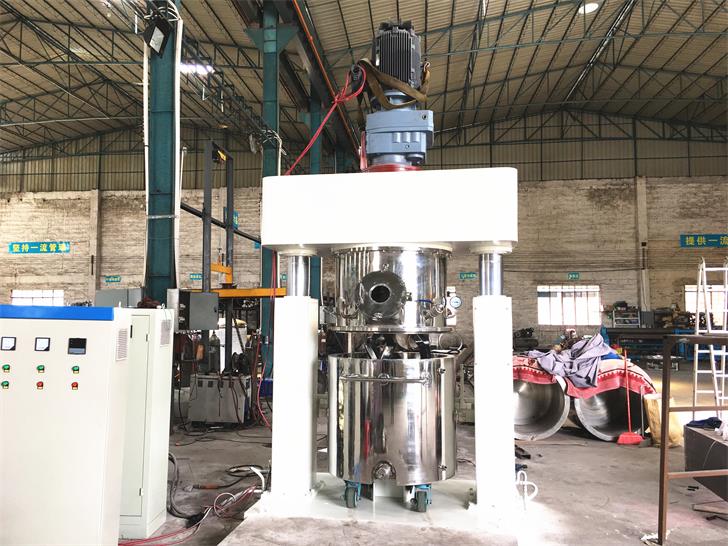 The planetary mixer is a new type of fast and dead point free mixing and stirring equipment, which has a special and innovative mixing form. There are two or three multi-layer blade mixers and 1-2 automatic bottom scraping and wall scraping knives in the kettle. The mixer rotates around the axis of the kettle body while also rotating around its own axis at different speeds, causing the material to undergo complex movements inside the kettle and subjected to strong cutting and rubbing. The scraping knife inside the equipment rotates around the axis of the kettle body, scraping the materials stuck on the wall to participate in mixing, making its effect more ideal.